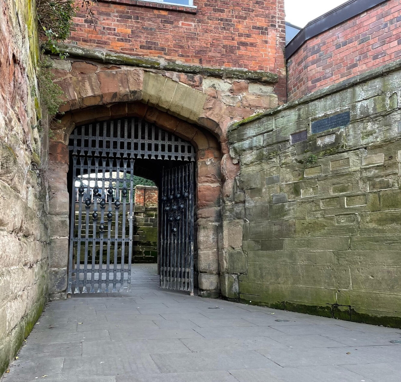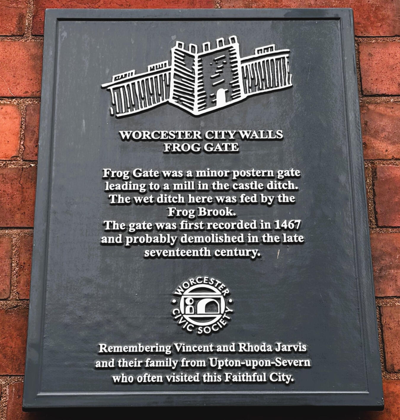 You spotted where one of several ‘gates’ attached to the City Walls was originally built. Frog Gate was a minor postern gate leading to a mill in the castle ditch; the wet ditch here was fed by the Frog Brook. The gate was first recorded in 1467 and probably demolished in the late seventeenth century.